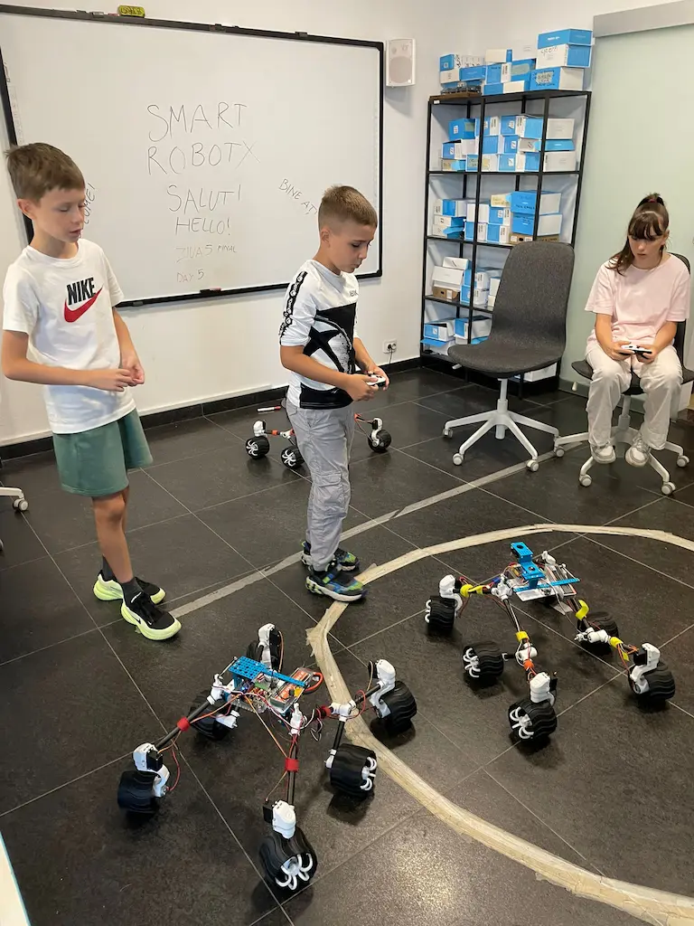 Aici copilul tău va experimenta direct cum se construiește, programează și controlează un robot real — învățând logică, gândire critică și creativitate.