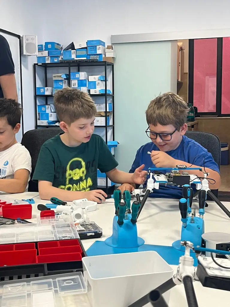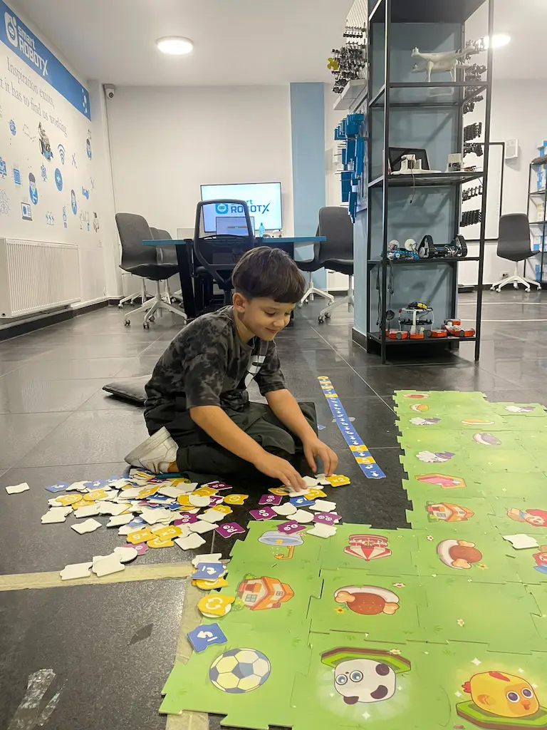Aici copilul tău va experimenta direct cum se construiește, programează și controlează un robot real — învățând logică, gândire critică și creativitate.