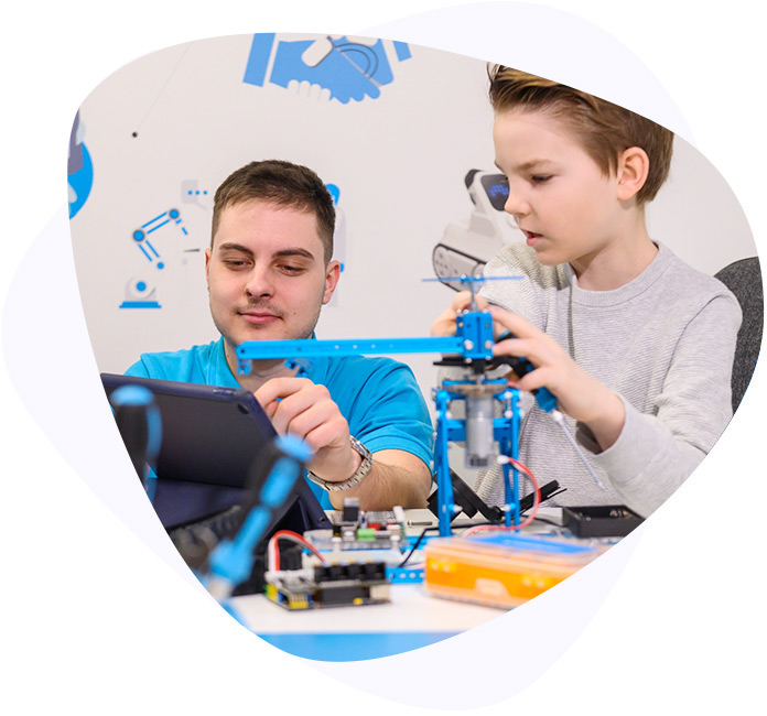 Hub-ul nostru este dotat cu cele mai noi tehnologii și echipamente și adăugăm mereu altele noi, astfel încât copilul tău să poată explora posibilitățile roboticii fără nicio barieră.